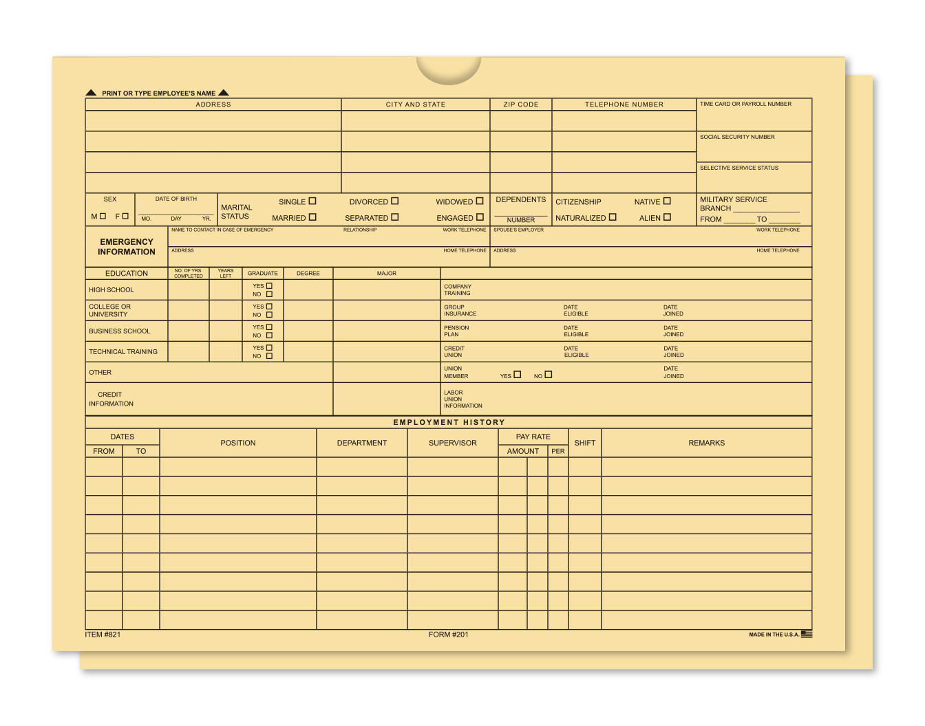 Keep track of your employee’s important data all in one convenient location. Front of jacket includes sections for employee personal data, as well as space for emergency information and employment history. Back of jacket has space for termination information and additional notes.