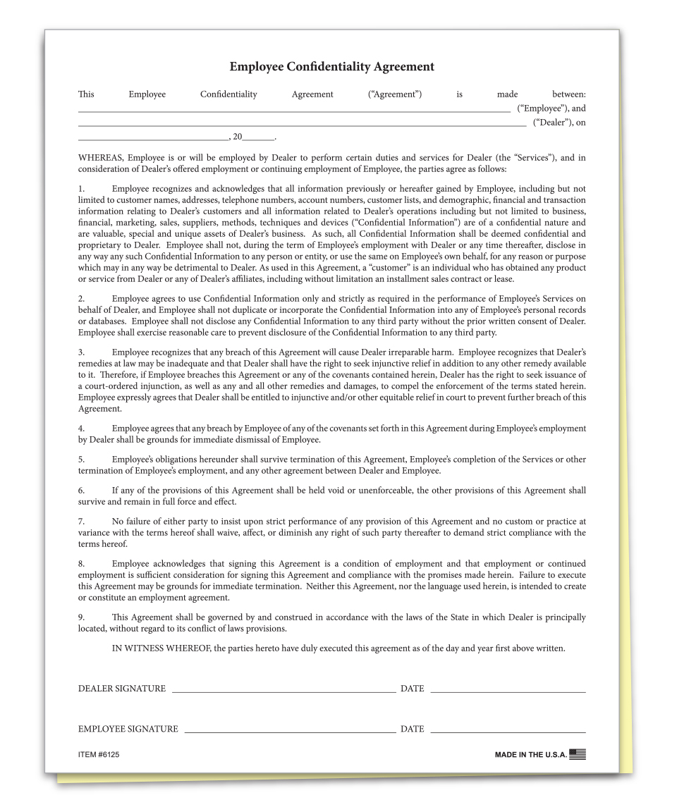 Use this form to help protect and convey confidentiality rules. This form also helps with red-flag rules.