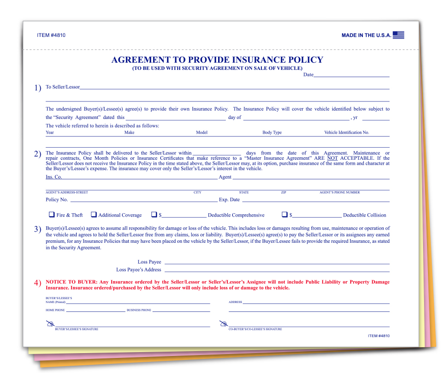 Protect yourself and your customer. This form helps ensure that all sold vehicles will have insurance. This form is a must have!