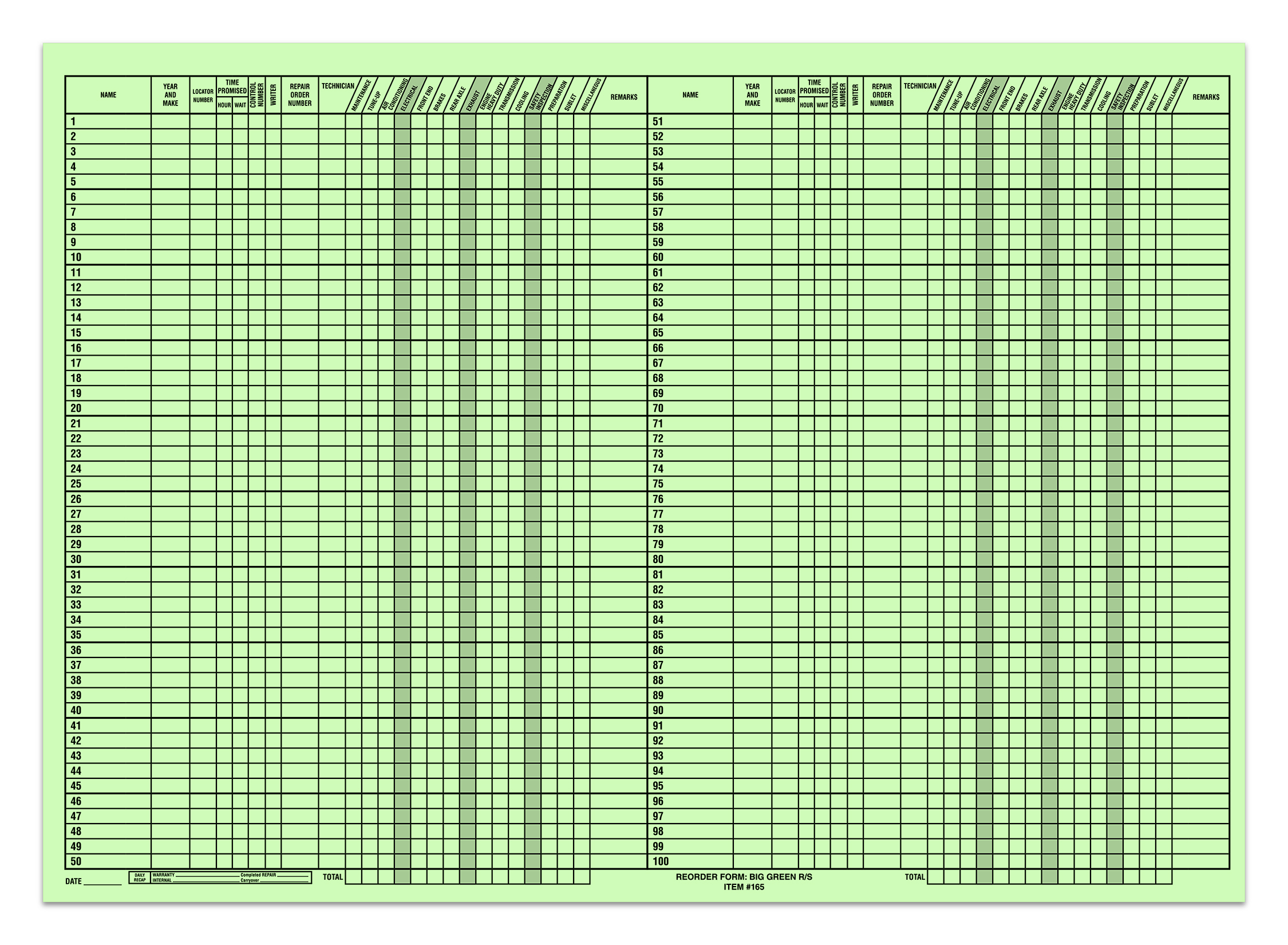 Schedule up to 100 vehicles on one sheet! This popular route sheet has all the information needed to track a vehicle from start to finish.