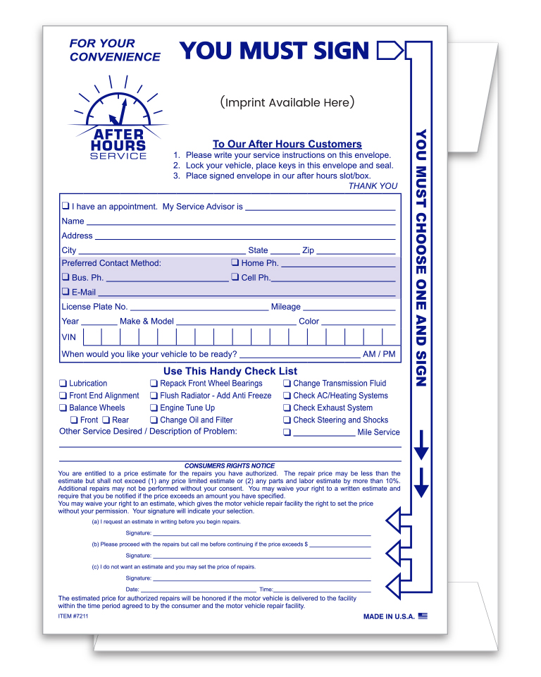 These night drop envelopes are made of heavy duty 24# white wove stock. The envelopes are the perfect size - large enough to hold keys with remote and compact enough to fit through doors and not overload your box.