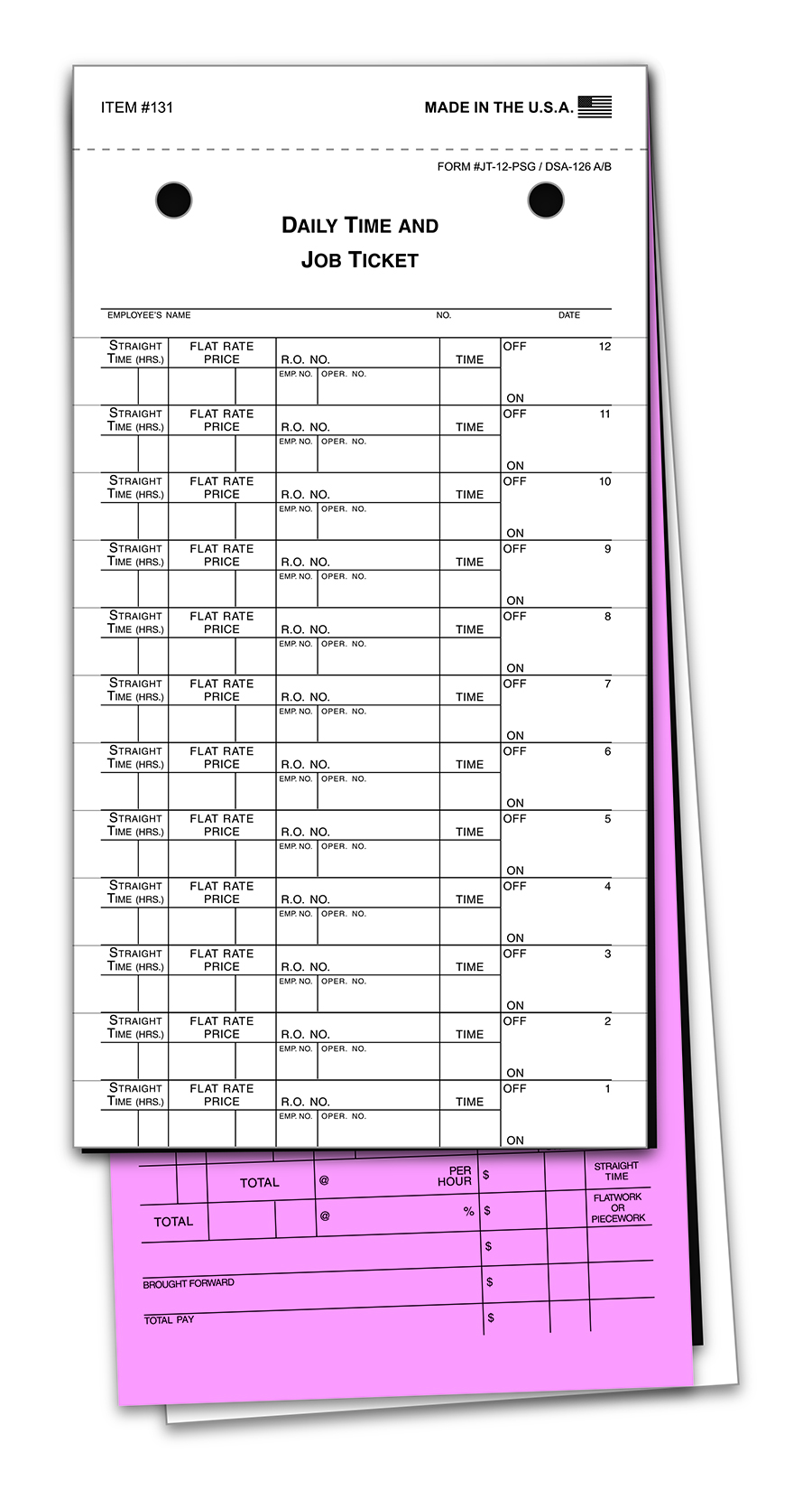 Need help tracking mechanic's time? Use these versatile time tickets with many styles available. These high quality time tickets have easy to peel off labels and enhanced carbon to ensure all copies are easy to read.