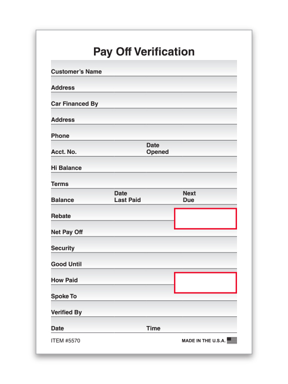 Ensure that you know the exact payoff amount. This form is a great way to document actual payoff amounts and who verified this information.