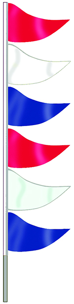 Six foot, strong fiberglass pole allows pennants to bounce in slight breeze without breaking in strong wind.