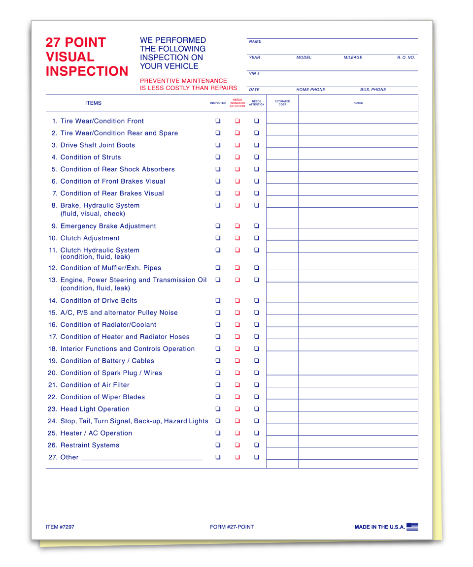 Use this 27 Point Inspection for customer satisfaction and additional repairs.