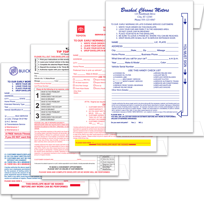 These night drop envelopes are made of heavy duty 24# white wove stock. The envelopes are the perfect size - large enough to hold keys with remote and compact enough to fit through doors and not overload your box. Great way to personalize your night drop envelope to meet your needs! We can also match any existing envelope.