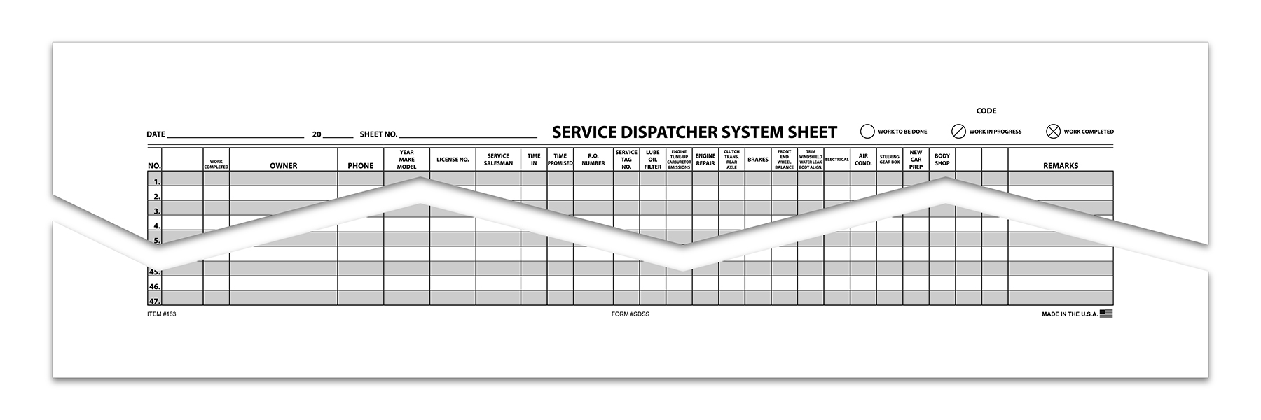 These large route sheets are padded and offer a great way to track the progress and types of repairs on a daily basis.