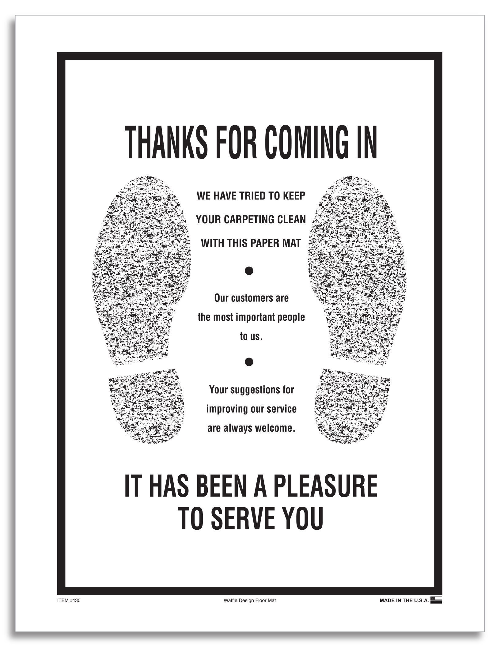- Imprint: "Thanks for coming in - It has been a pleasure to serve you" - Footprints