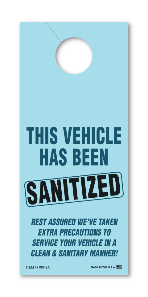 Hangs on rearview mirror and is an excellent way to communicate with your customer.